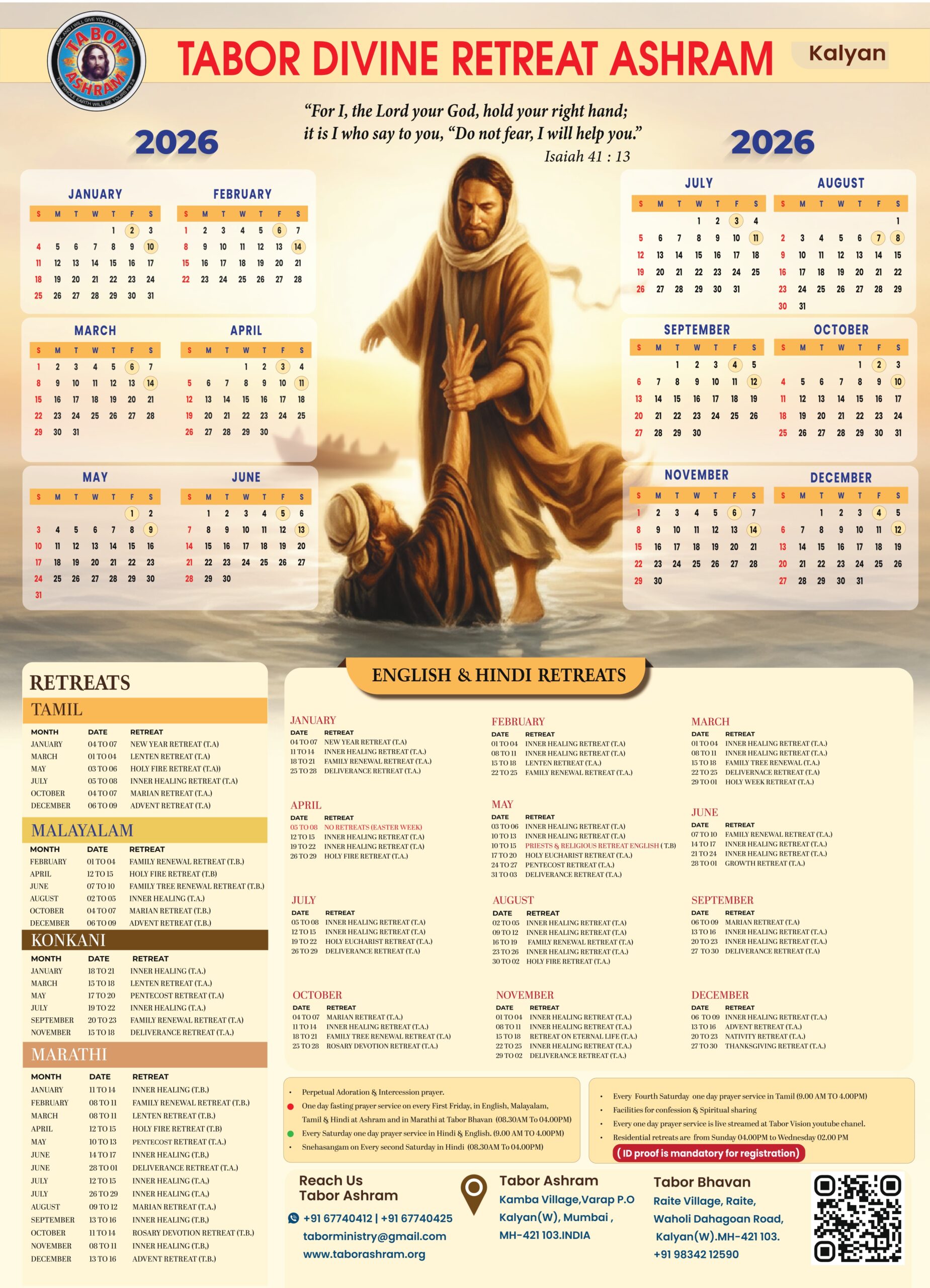 ENGLISH, HINDI, TAMIL RETREATS (AT TABOR ASHRAM) MARATHI, MALAYALAM, KONKANI RETREATS (TABOR BHVAN) 4:00 pm(08.30 am to 04.00 pm)